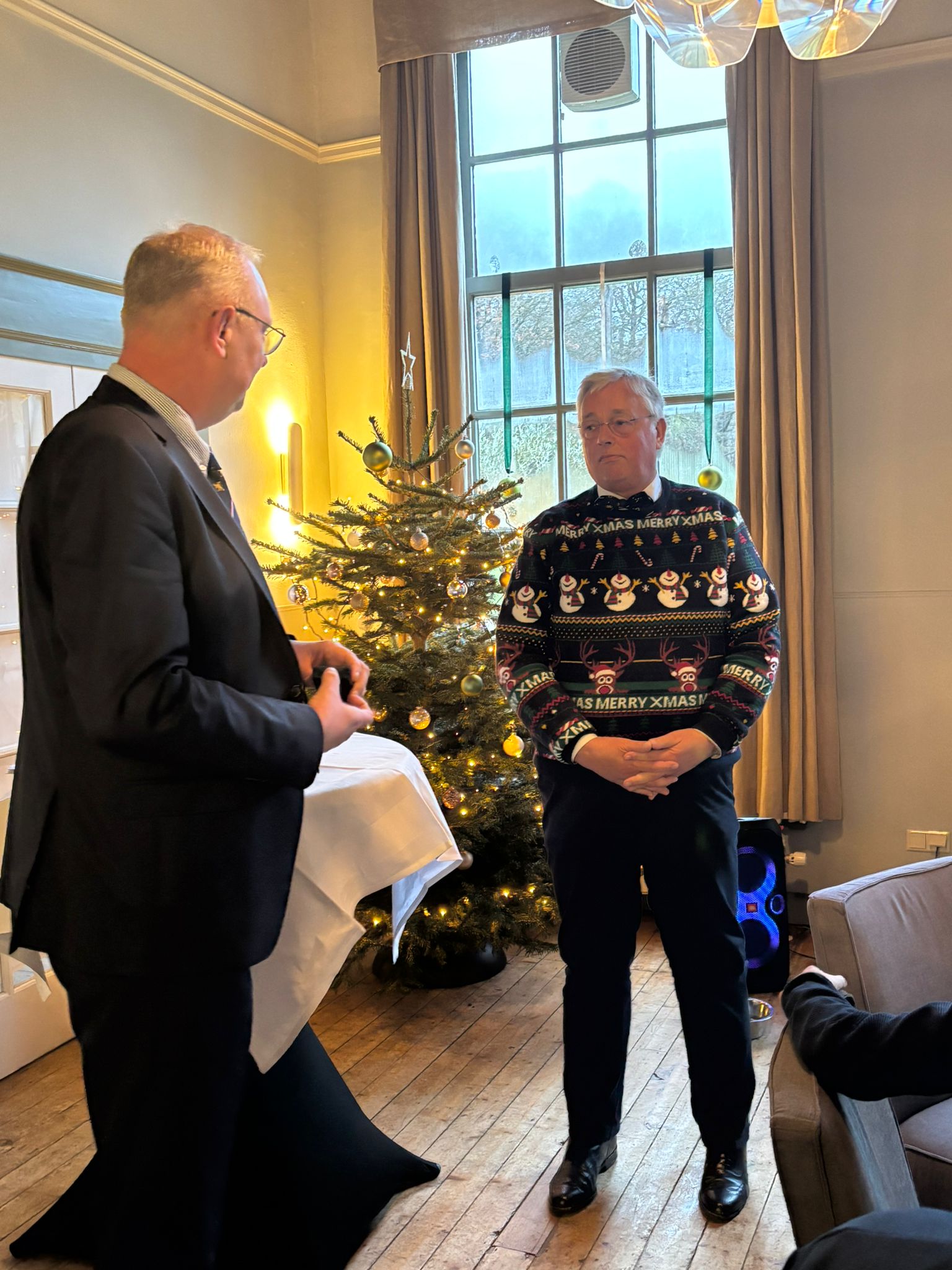 Op de inmiddels traditionele kerstbijeenkomst voor algemeen bestuursleden, het TVO en andere medewerkers en vrijwilligers werd vanmiddag algemeen voorzitter Ronald Odenkirchen verrast met het Zilveren Bondskruis met bijbehorende oorkonde. Hij kreeg deze bijzondere waardering uitgereikt door algemeen secretaris Ruud van Brummelen in het bijzijn van zijn dochter, zoon en een van zijn kleinzonen. Als blijk van waardering voor zijn niet aflatende inzet voor de voortgang en toekomstbestendigheid van de BNMO.